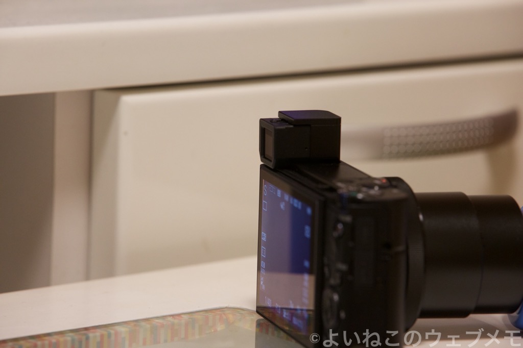 更に、ELファインダーを指で引っ込めると、カメラの電源が切れるという・・・。設定で変えられるのかな・・。