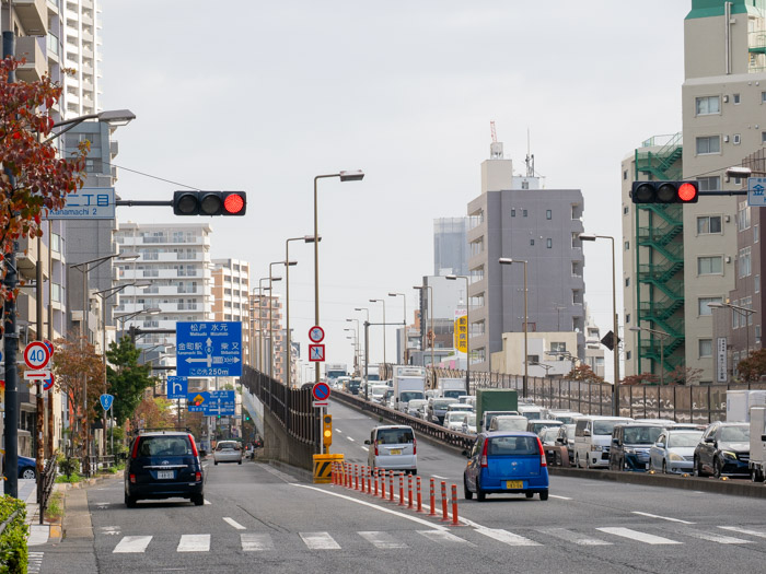 6号線を通って中川を渡り、金町のあたりで江戸川に合流するルートで進みます。