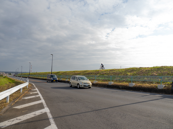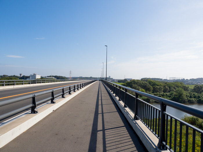 ぷち坂を登りきると、江戸川を横断する一直線の道に。