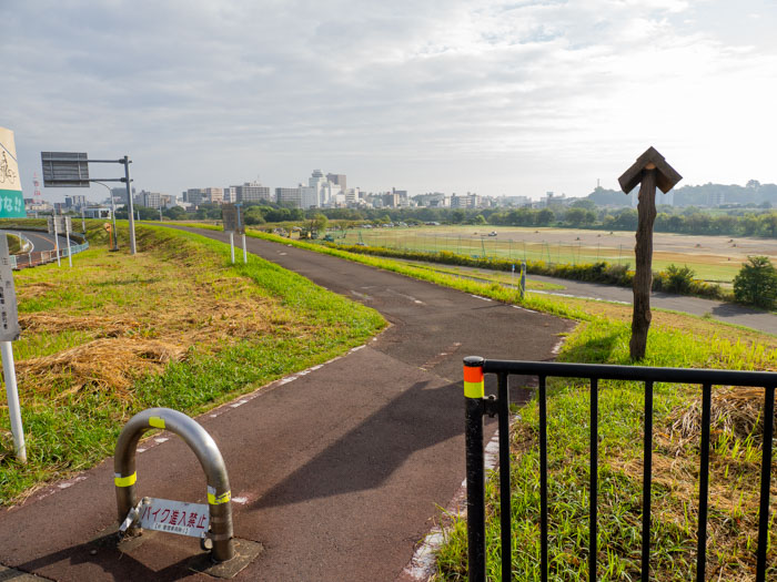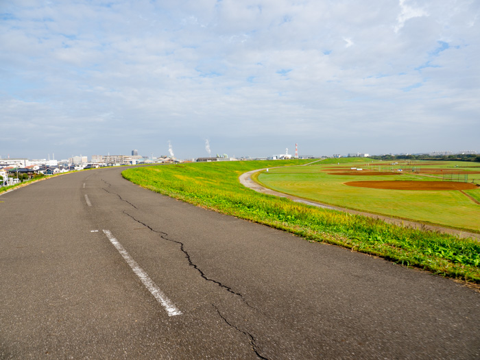 野球場沿いの道はかなりの砂利道になっているので、大人しく土手の上を走るほうが良さそうです。