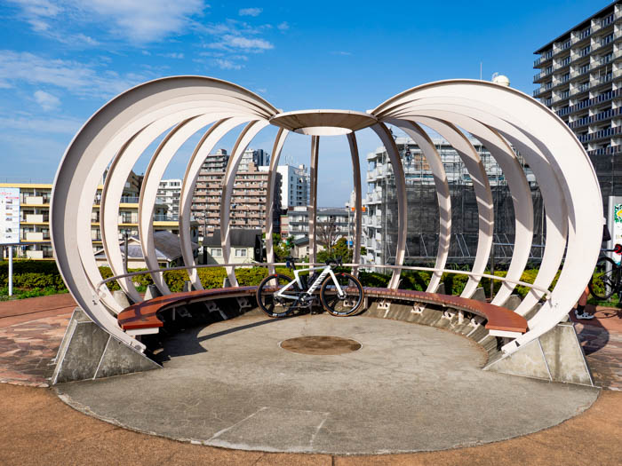 風ひろばには自販機こそないものの、キレイなトイレとサイクルラックがあり、サイクリストの休憩・集合場所にちょうどいいですね。