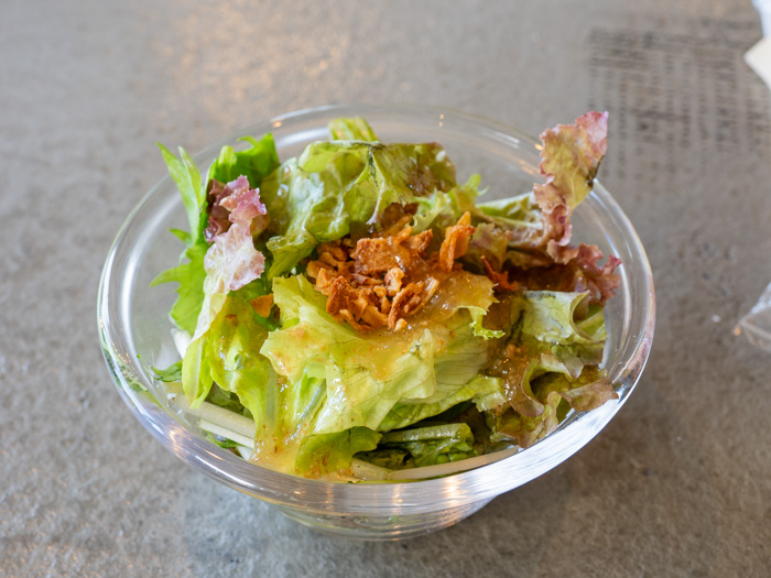 サラダ付きで、柏・我孫子の地産野菜がグリルされてカレーにトッピングされています。
