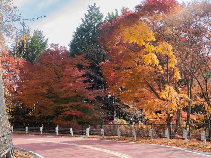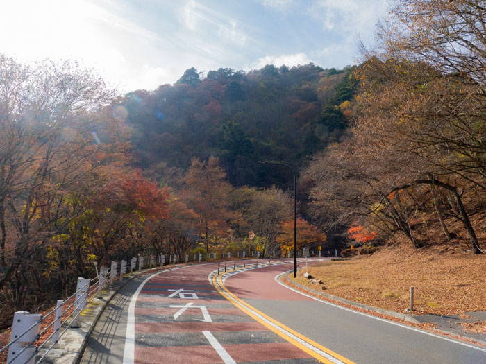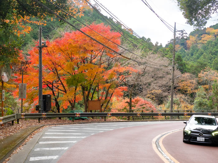 途中の道でも紅葉しているところがちらほら。特に山の中腹辺りにも紅葉している様子が見えていたので、今日は登りながら紅葉を楽しめそう!