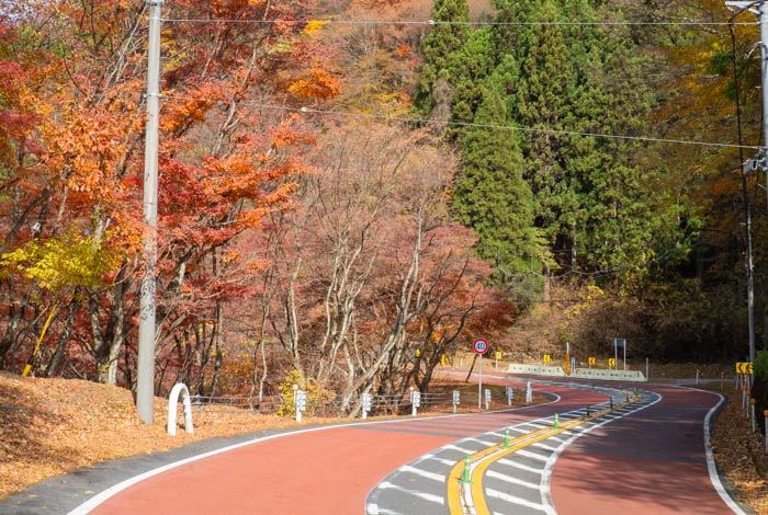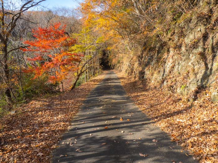ただ、林道感はこちらのほうが強く、突然紅葉のトンネルが現れたり、MPは回復させてくれるような道です。