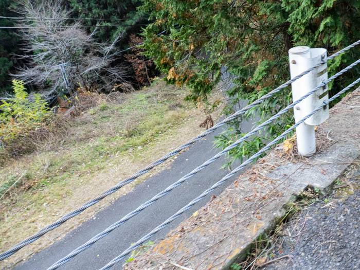 旧料金所から右を見ていただくと、上の方にガードレールのようなものが見えていると思います。