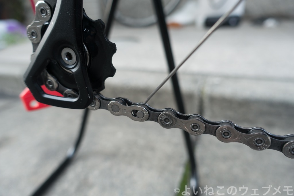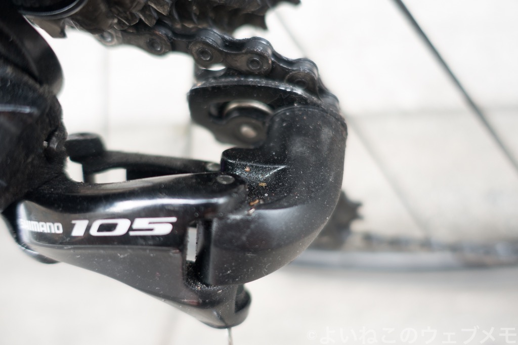 このまま放置すると、ペダリングした際の抵抗が増えたり、パーツの消耗が早くなるという弊害も・・・。